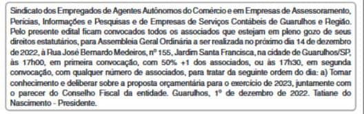 A PROPOSTA ORÇAMENTÁRIA PARA O ANO DE 2023, FOI APROVADA PELA DIRETORIA E SÓCIOS PRESENTES NA ASSEMBLEIA REALIZADA EM 14/12/2022.