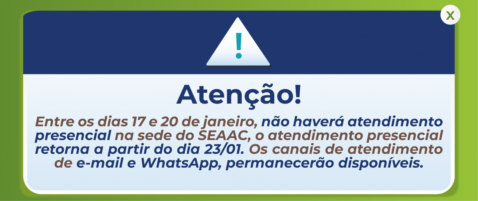 RECESSO SEAAC - DIA 01/12/2024