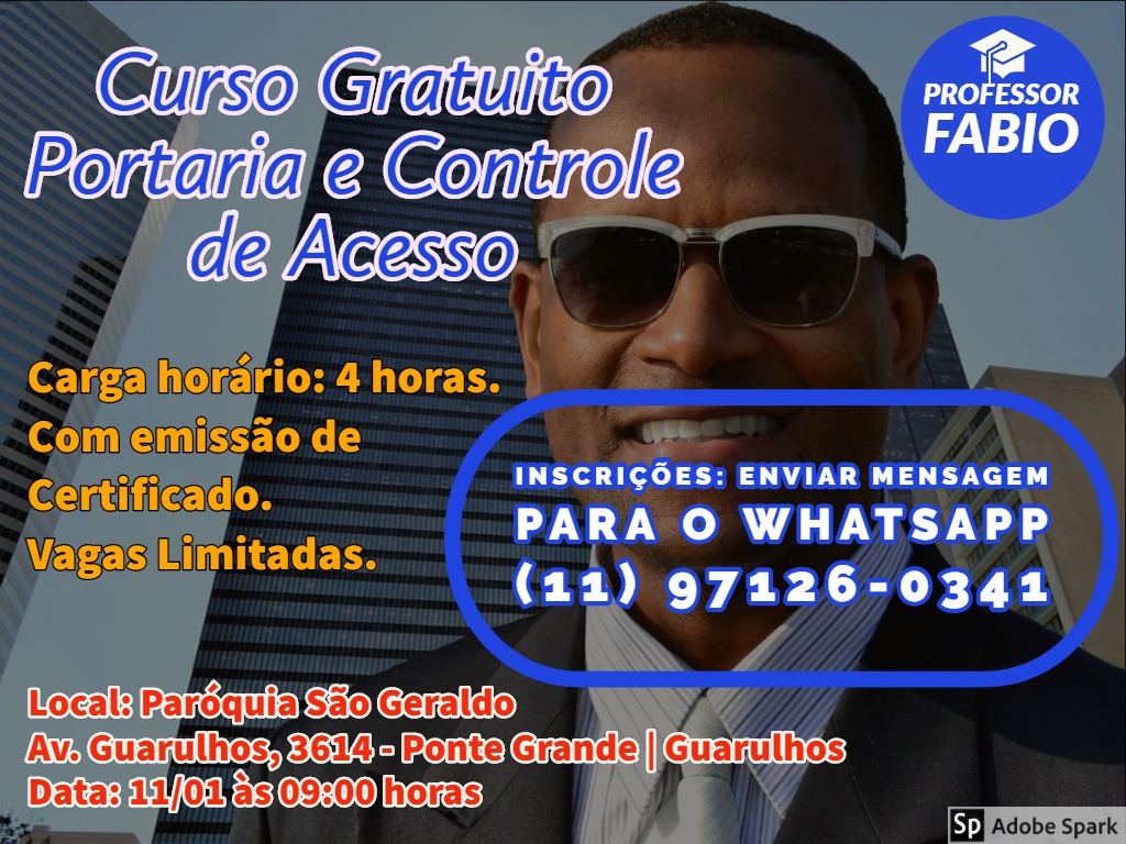 No próximo sábado na Paróquia São Geraldo, será realizado um curso de "Portaria e Controle de Acesso" será totalmente gratuito, além de indicar empresas para enviar o currículo.