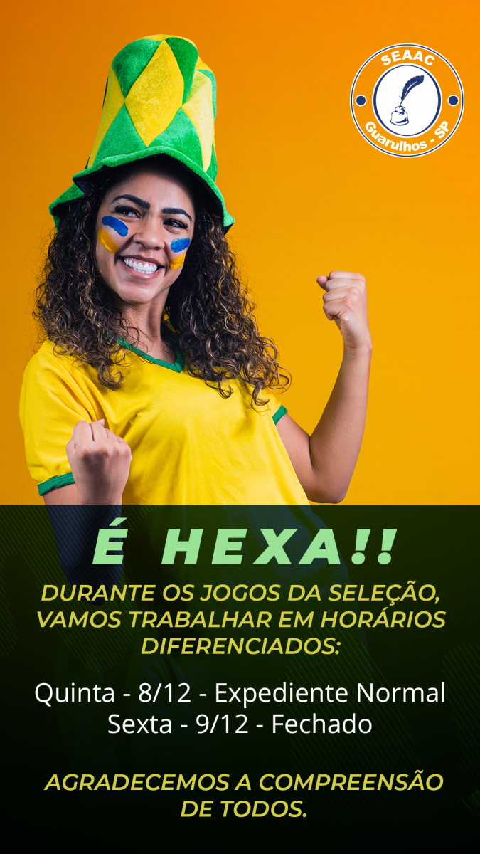 Dia 09/12 Sexta-Feira (Jogo da Seleção) - Não Haverá Expediente