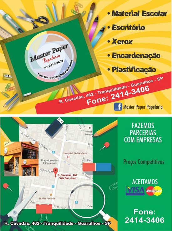 Master Paper Papelaria, desconto concedido aos associados mediante apresentação da carteirinha de sócio Seaac no ato da compra.